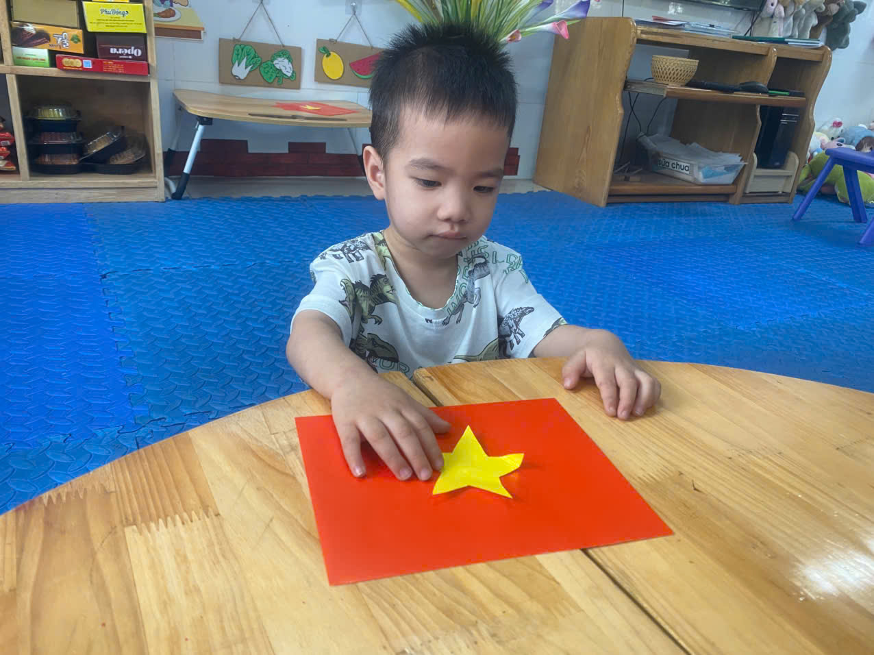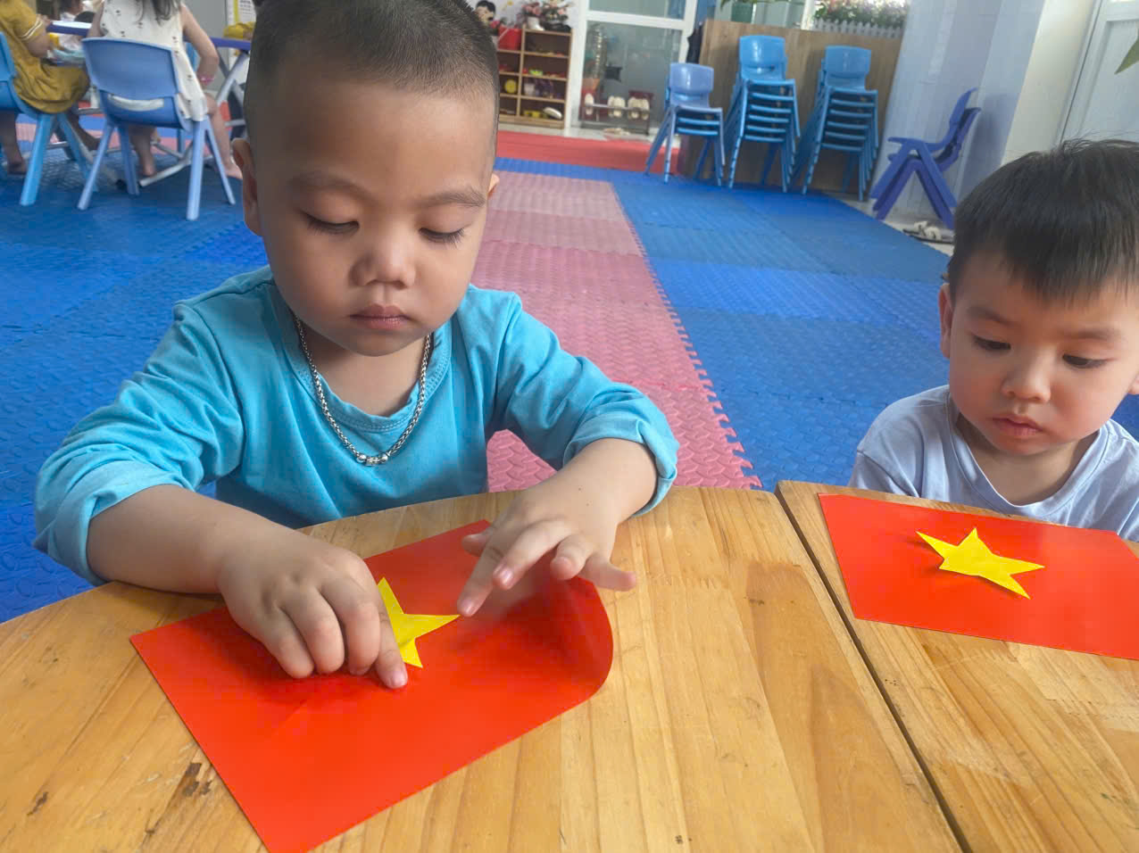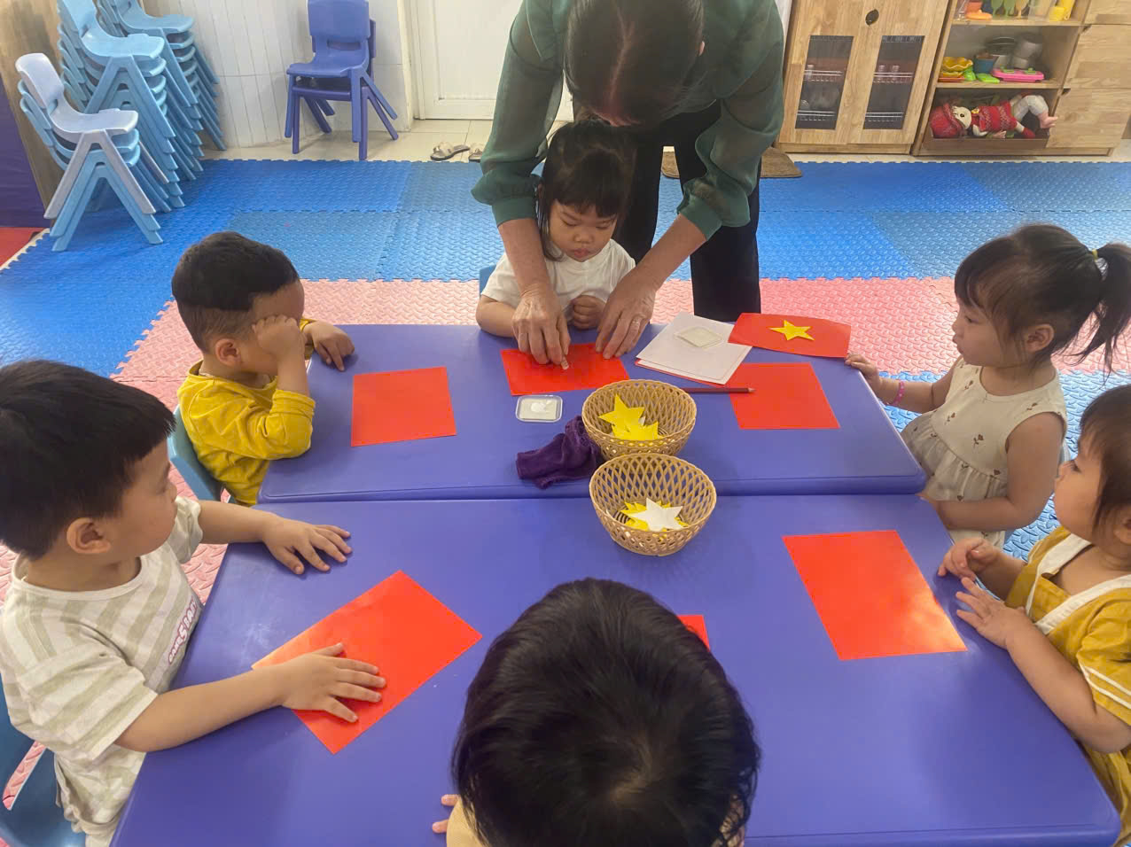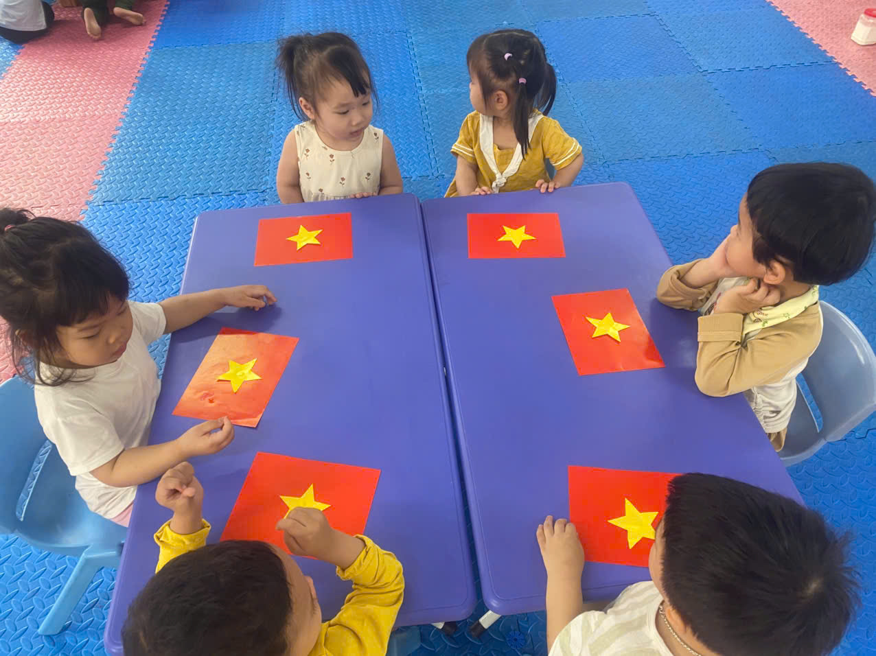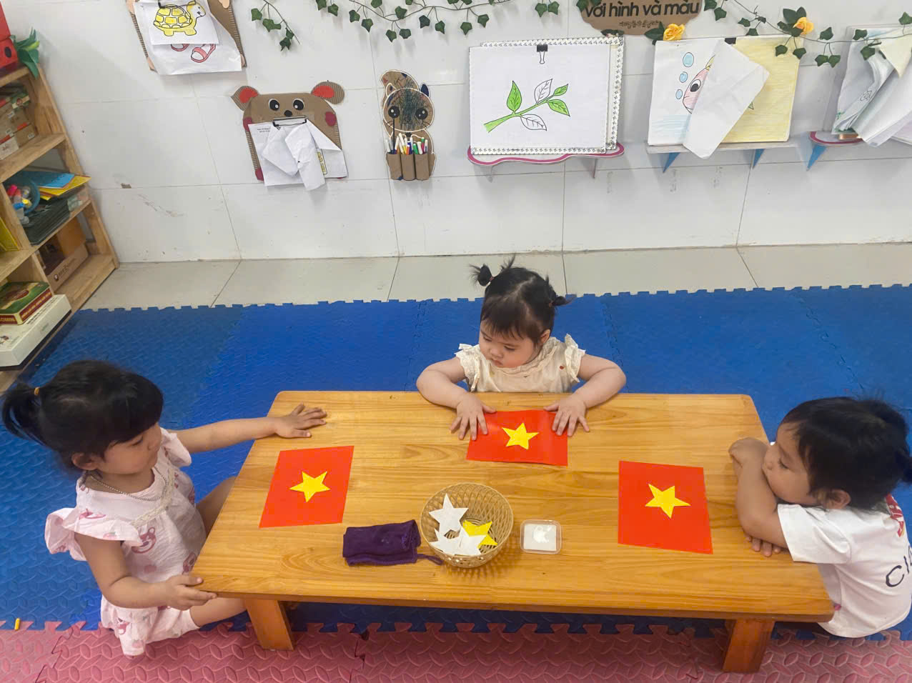 🌟🌟Dưới sự hướng dẫn tận tình của các cô giáo, các bé đã cùng nhau sử dụng những nguyên vật liệu đơn giản, thân thiện với môi trường như giấy màu, keo dán,....để tạo nên những chiếc lá cờ đáng yêu. Mỗi sản phẩm đều mang dấu ấn riêng, thể hiện sự khéo léo, tinh thần đoàn kết và niềm tự hào về lịch sử dân tộc.❤️❤️❤️